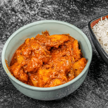 Boneless chicken pieces prepared in a Himalayan-style sauce made from tomatoes potatoes, onions, garlic, and ginger finished with lime juice