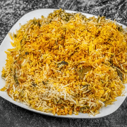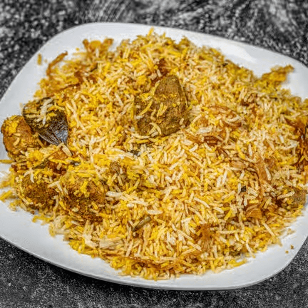 Cubes of boneless chicken cooked with basmati rice along with aromatic spices.