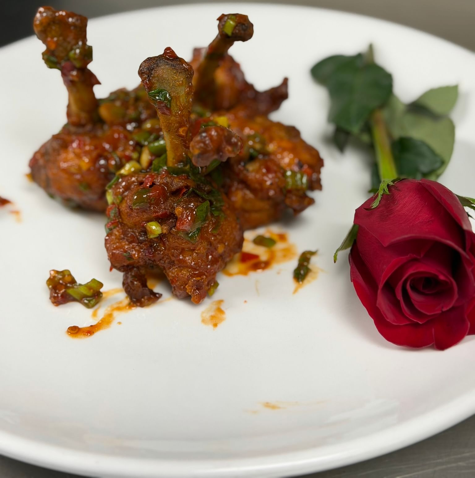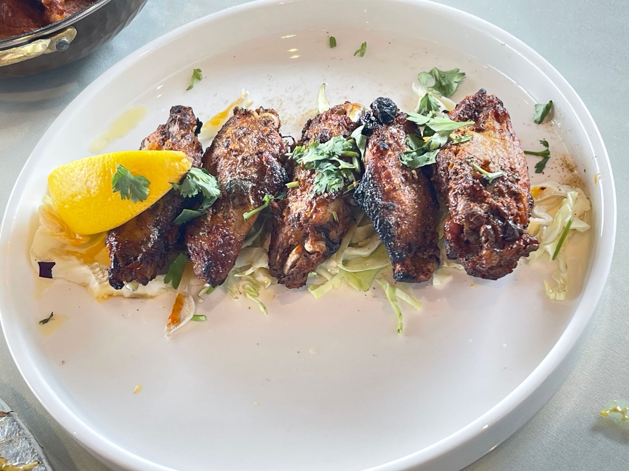 Tandoori roasted chicken wings, served with lemon and mint sauce. 5 pieces.