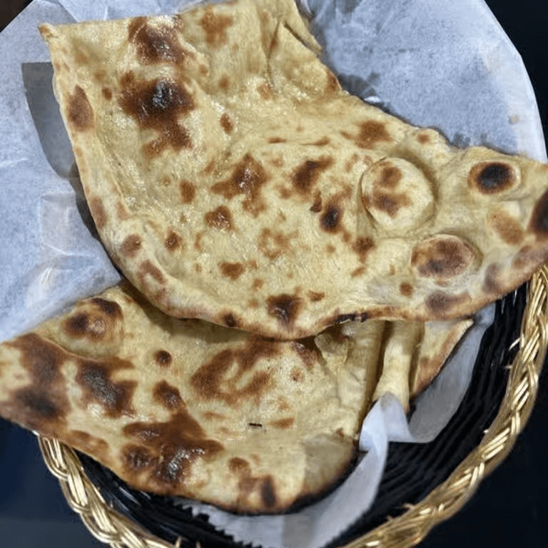 Classic leavened bread made with wheat flour and baked in the tandoor.
