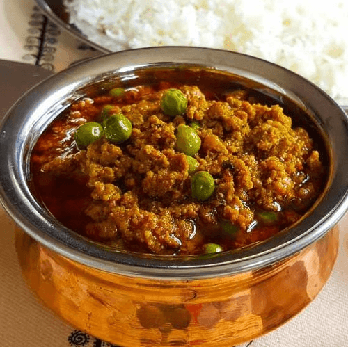 Ground lamb cooked with a touch of green peas