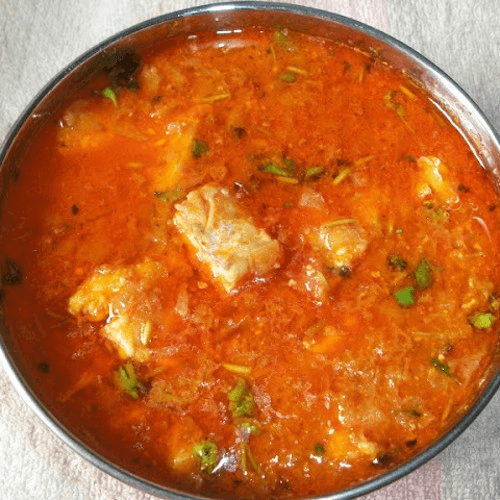 Baby goat cooked in hot and spicy sauce with potatoes