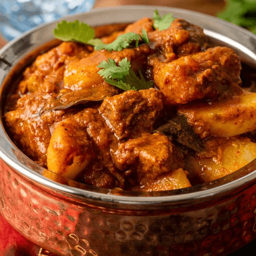 Lamb cooked in hot and spicy sauce with potatoes