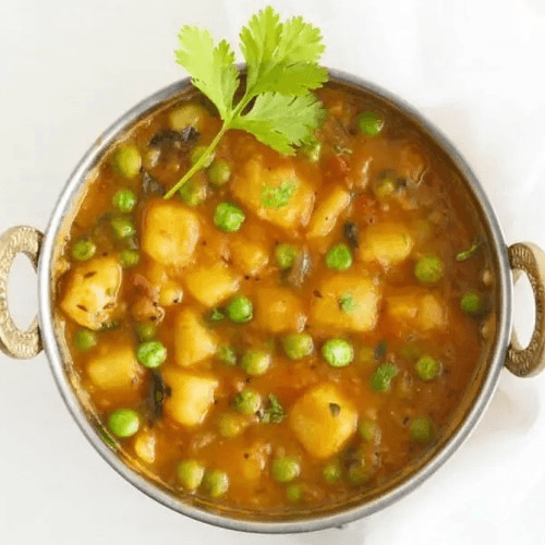 Fresh green peas, cooked in a spiced sauce with potatoes