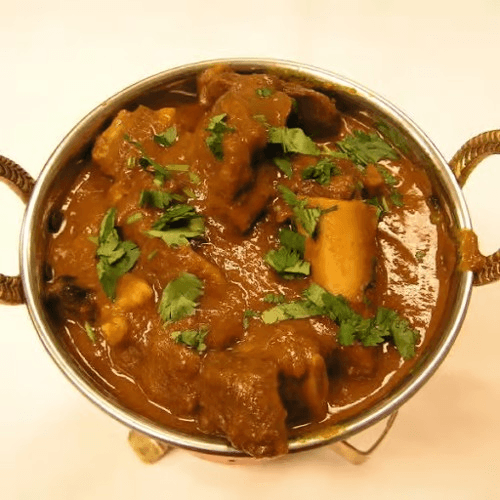 Baby goat cooked with herbs and spices in a thick curry sauce