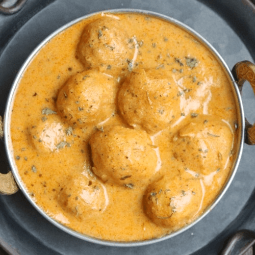 Minced garden fresh vegetable dumplings (cauliflower, carrots, potatoes, & paneer) cooked in a rich gravy and crushed cashews