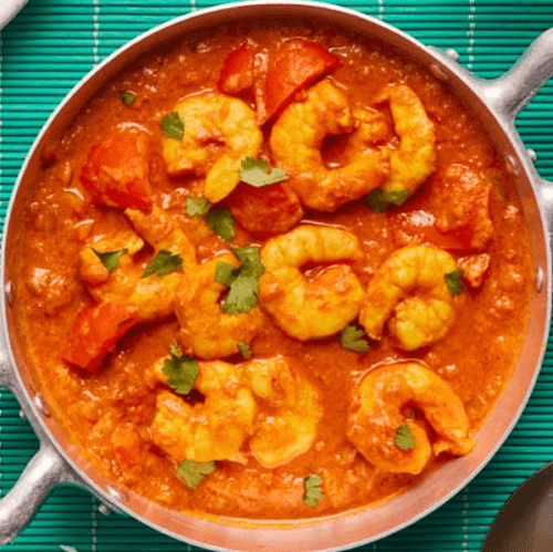 Marinated shrimp, grilled in tandoor oven, and then sautéed in tomato sauce