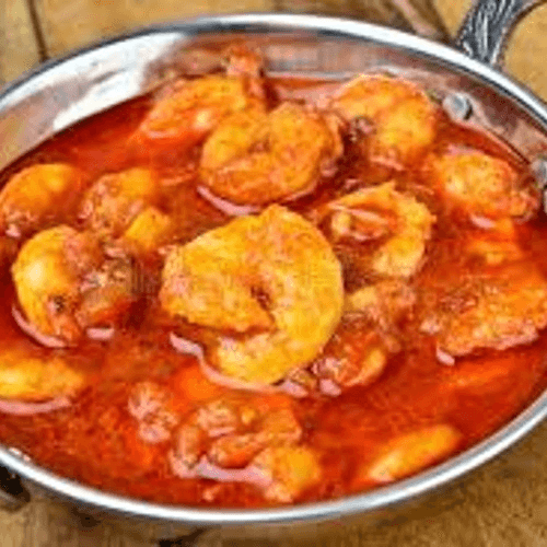 Shrimp cooked in hot and spicy sauce with potatoes