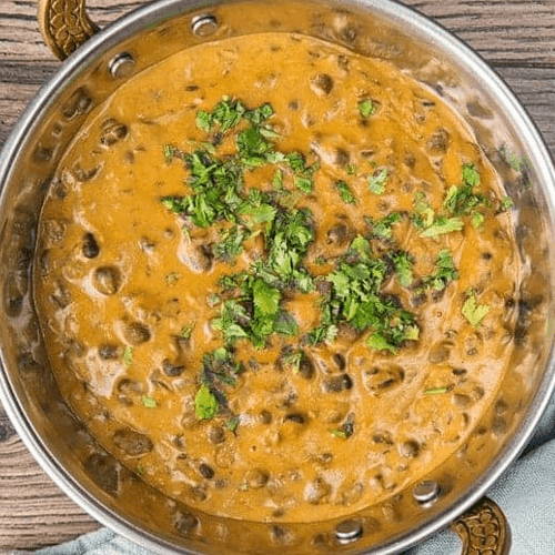 Lentils (black-urad), split chickpeas (chana) dal, & kidney beans (rajmah) flavored with freshly ground spices