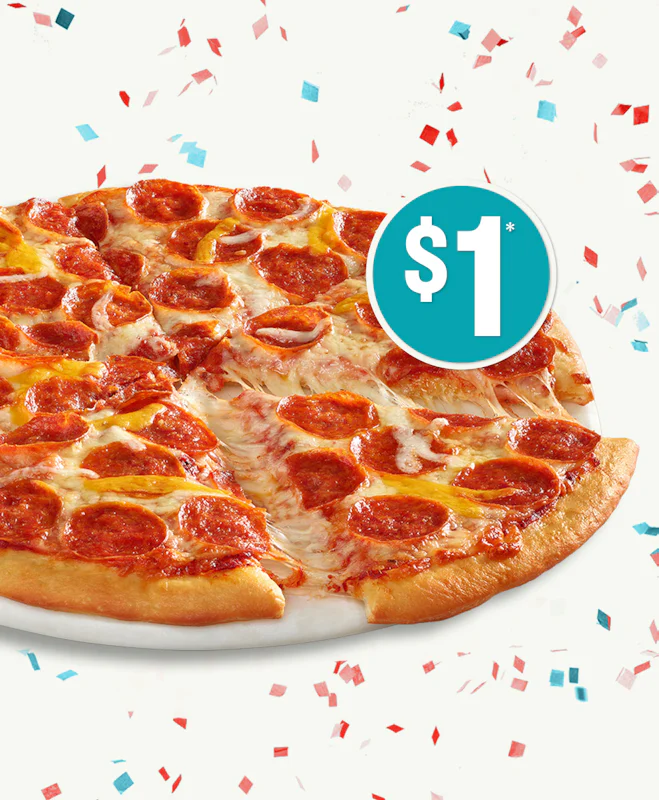 Enjoy delicious flavors at a great price. Take your pick from two pizzas on Large Thin OR Original Crust, for just $9.99 each. Upgrade to Family size for $3 more! Double Shredded Pepperoni Two portions of Shredded Pepperoni, Mozzarella, Topping Cheese, and Herb & Cheese Blend, and Traditional Red Sauce. 4-Cheese Mozzarella, Cheddar, Parmesan, and Herb & Cheese Blend made with Parmesan and Romano Cheese, and Traditional Red Sauce.